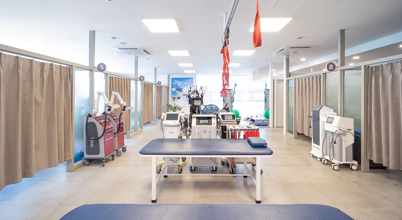 로봇 물리치료, 체외충격파, 히로 치료기 등 최신 장비를 갖추고 있습니다.