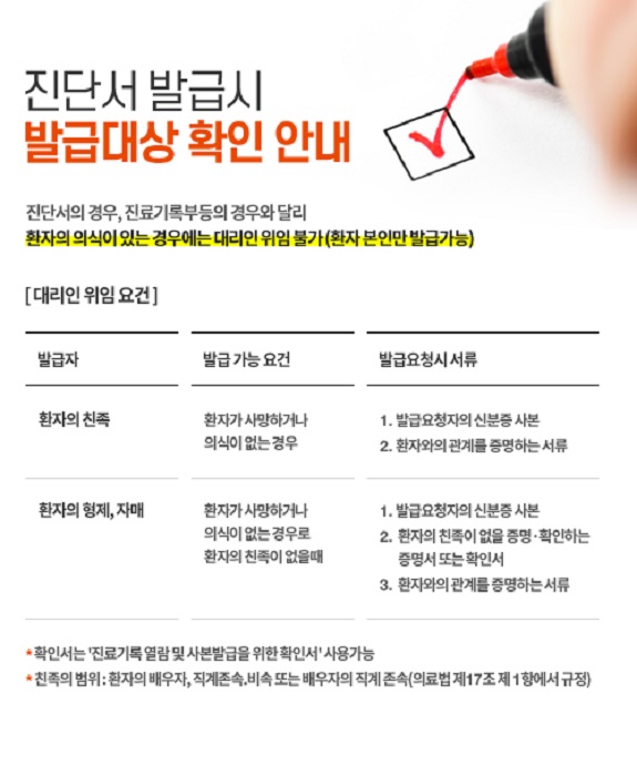 진단서 발급시 발급대상 확인 안내